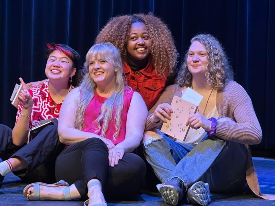 The winner will compete in June in Des Moines at the NFSPS National Convention. She is seated on the left. Kelsey Bigelow is front and center and organized the event. Kelsey is a ray of sunshine and a fantastic performing poet. Hannah, Charlie Hall is on the right. He is phenomenal. The poets’ scores were 0.1 points apart from each other. Personally, I would have liked to have seen Hannah win because he thought my scores were too low. We bonded at the first event, and he’s only 18.